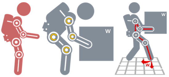 Technologies such as assistive devices provide artificial characteristics for different areas of the body, with some focused on containing, replacing, enhancing, and smoothing movements and loads. The National Library of Medicine of the United States defines a splint as a device used to stabilize a part of the body to reduce pain and prevent further injury [11]. A prosthesis is a device designed to replace a missing body part or to improve the function of an existing body part. Injured or missing eyes, arms, hands, legs, or joints are commonly replaced with prosthetic devices [12]. The University of Michigan Health describes an orthosis as a device designed to improve biomechanical function, encourage proper joint alignment, or protect an existing limb [13]. Garcia, M.A. et al. describe an exoskeleton as a type of assistance/rehabilitation robot that can be worn by a human [14]. According to Urrea, C. et al., an exoskeleton is a structure intended to be worn on the human body as a piece of clothing, i.e., a wearable robot (WR), either to complement the function of a limb or to completely replace it [15]. In summary, the four types of human body movement assistance devices can be defined as: