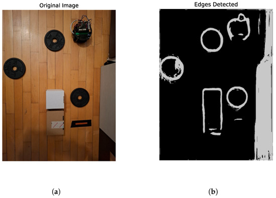 Following the acquisition of the depth map and the identification of the objects, a Sobel filter—described in detail in [11]—was applied to detect prominent horizontal and vertical edges within the scene As demonstrated in Figure 3b, these edges contribute to the emphasis of the objects’ structural composition. The previously identified edges served as input to the cv2.findContours() function, which was used to extract the contours of the objects.