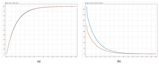To meet this performance criterion, two Proportional-Integral (PI) controllers were synthesized—one for each motor. The resulting control laws are expressed in equations