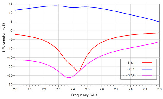 The key design metrics, such as the reflection coefficient , gain , and power-added efficiency (PAE), highlight the critical role each component plays in achieving optimal performance in the 2.3–2.5 GHz frequency band.