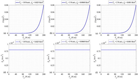 Figure 4 illustrates the variation in the conventional and proposed diagnostic features [33] versus the instantaneous torsional load for the three different torque rates and chirp rates. It is assumed that the damping coefficients are the same and set to = 0.05, where [51]. As this figure demonstrates, the magnitude of the fundamental rotational harmonic depends on the level of the torsional load in non-stationary conditions. This dependency is because of the dependency between the fundamental rotational harmonic intensity and the rotational speed as well as the dependency between the torsional load and the rotational speed, which is unavoidable in non-stationary conditions. However, as Figure 4d–f demonstrates, the proposed diagnostic feature is independent from the torsional load because it is speed-invariant. So, aside from speed-invariancy, it can be claimed that this feature is also load-invariant.