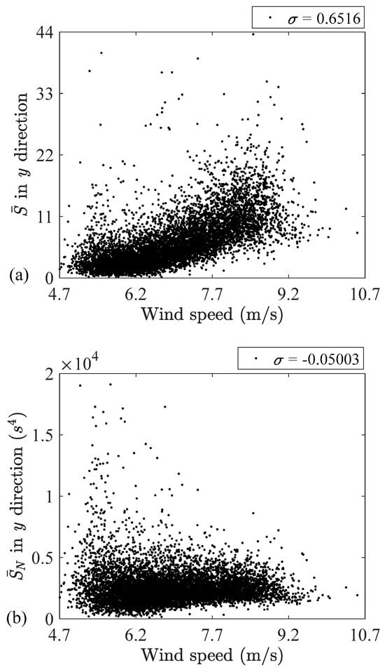 In view of the fact that the corresponding torsional load is proportional to the wind speed in power two [52,53,54], independence from the wind speed indicates the load invariance of the proposed diagnostic feature [33]. Figure 5 illustrates the variation in the normalized conventional (i.e., ) and proposed (i.e., ) unbalance fault indicators [33] versus the wind speed. The dependency between each feature and the wind speed is quantified by the normalized cross-covariance (i.e., σ) [40], which is given in Figure 5 as well.
