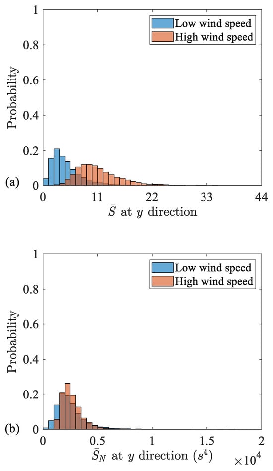 Histograms of the normalized (a) conventional and (b) proposed [33] unbalance fault indicators corresponding to low and high wind speed conditions.