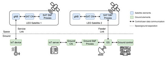 - Kellermann, T.; Centelles, R.P.; Camps-Mur, D.; Ferrus, R.; Guadalupi, M.; Auge, A.C. Novel Architecture for Cellular IoT in Future Non-Terrestrial Networks: Store and Forward Adaptations for Enabling Discontinuous Feeder Link Operation. IEEE Access 2022, 10, 68922–68936. [Google Scholar] [CrossRef]
