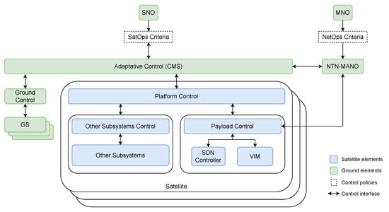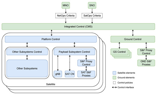 The remainder of this paper is structured as follows. Section 2 surveys the proposed architectures in the literature for STIN and describes the management of satellite and network operations. Section 3 proposes the novel integrated management framework to operate a satellite-based NTN. Section 4 describes the design of different control architectures enabled by the CMS, covering sporadic and persistent connectivity constellations. Section 5 evaluates the key enabling features of the proposed management framework and operational architectures, and how they address the identified gaps and novel challenges that emerge from integrating both operational management methodologies. Finally, Section 6 concludes this work.
