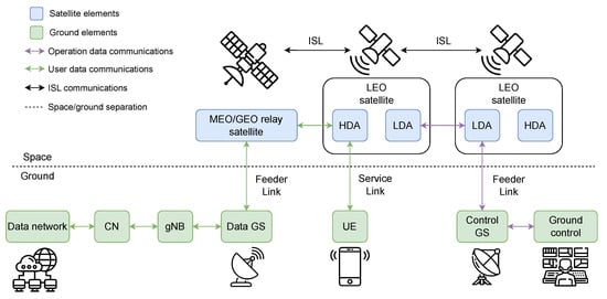 - Avila, J.; Anna, C.; Ruiz-de Azua, J.A. Integrating geographical information systems in management and orchestration of satellites constellation to achieve a spatial-aware 6G Non-Terrestrial Networks architecture. In Proceedings of the 75th International Astronautical Congress (IAC), Milan, Italy, 14–19 October 2024; International Astronautical Federation (IAF): Paris, France, 2024. [Google Scholar]