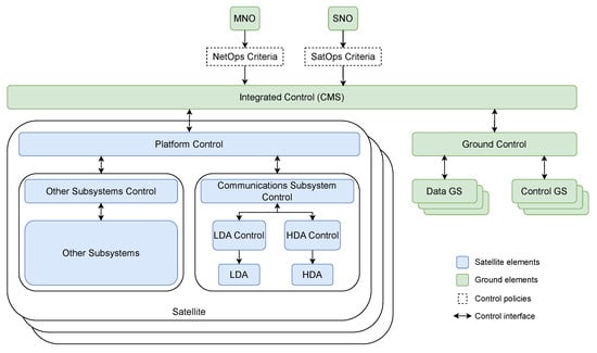 - Cappaert, J.; Nag, S. Network Control Systems for Large-Scale Constellations. In Handbook of Small Satellites: Technology, Design, Manufacture, Applications, Economics and Regulation; Springer: Cham, Switzerland, 2020; pp. 1–22. [Google Scholar]