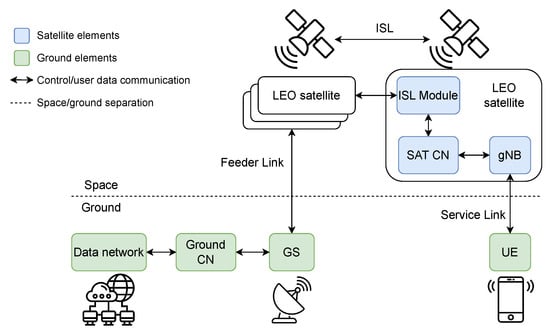 - 3rd Generation Partnership Project. Study on Integration of Satellite Componentsin the 5G Architecture: Phase 2 (TR 23.700-28 Release 18); Technical Report, Technical Specification Group; ETSI: Valbonne, France, 2023. [Google Scholar]