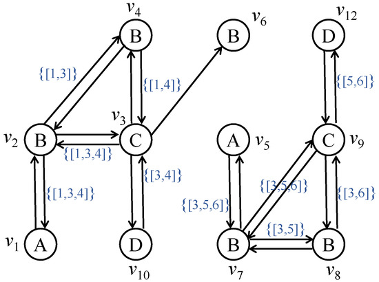 - For , if there exists a bidirectional edge between v and w, then add into , where is a set of time subsets of that satisfy the temporal constraints.