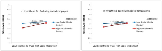 - Social media trust, however, exhibits a robust positive association with fake news sharing, remaining significant in both models (β = 0.170, p < 0.001 without sociodemographics; β = 0.140, p < 0.001 with sociodemographics), supporting Hypothesis 2.
