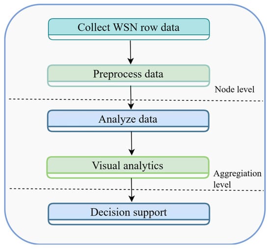The proposed architecture is designed to be protocol-agnostic by operating primarily at the data abstraction layer. This means that regardless of the underlying communication protocol (e.g., ZigBee, Bluetooth, or GSM/GPRS), the system processes incoming data using a standardized preprocessing and analysis pipeline. Thus, the framework can integrate data from heterogeneous WSNs, provided the data formats are converted to a compatible input structure.