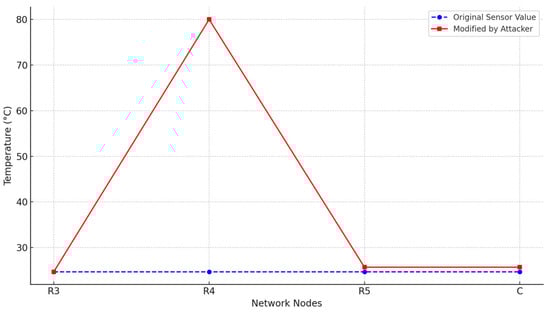 Due to constrained energy, computation, and storage capacities, WSNs are susceptible to multiple types of cyberattacks, particularly in the routing and application layers. Common routing-layer attacks include Sinkhole, Wormhole, Sybil, Spoofing, DoS, and MITM attacks [25,26]. These attacks often begin by manipulating routing protocols, such as redirecting traffic or injecting malicious paths, which weakens the network structure and facilitates subsequent compromises at the application layer, such as data falsification or unauthorized access to sensed information. As a result, not only are individual sensor nodes affected, but the integrity of the entire WSN infrastructure and its service to end users can be severely compromised.
