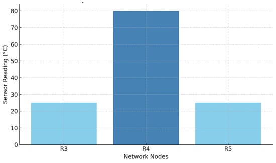 Figure 2 shows the five main stages of the WSN security incident detection methodology in the form of an Algorithm 1. The initial step includes data collection through sensor and device networks to acquire both static and dynamic information. Dynamic data refers to time-varying parameters that are continuously collected from sensor nodes in real time (e.g., temperature, hop count, and packet arrival time). These data are cleaned and normalized during the pre-processing stage. Anomaly detection is performed based on the 3-sigma rule. During the experiments, the temperature sensor data were found to be the most reliable, as they showed clear deviations during attack (e.g., when changed to 80 °C by Spoofing) and closely matched the ground truth data. This is described in detail in Section 4.1.1. The following stage involves data preprocessing by cleaning and filtering and organizing for normalization to establish a single data format, i.e., data cleaning refers to the removal of corrupted, incomplete, or inconsistent data entries collected from sensor nodes. The results are analyzed visually to discover attack patterns. The implementation of countermeasures along with network operation restoration requires appropriate decision making. The implementation of these structured stages produces significant improvements in WSN security protection.
