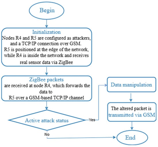The combined implementation of these technologies enhances the real-time responsiveness to network security incidents [20,21,22]. The combination of these two communication systems enables networks to better handle security incidents through real-time response [23]. The WSNs operating on GSM/GPRS protocols ensure reliable data transmission for sensor nodes located in remote areas across extensive coverage zones [24].