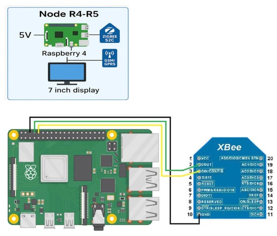 For Arduino-based sensor nodes, the firmware was developed in C++ using established libraries that support low-level hardware interfacing. Sensor data acquisition is performed via the analogRead() function, with collected values transmitted to the XBEE module over the UART interface. Data packets are then encapsulated in Zigbee-compliant frames and forwarded to the network coordinator. Each transmitted message includes a unique node identifier alongside the associated sensor readings, facilitating reliable source identification and data mapping.