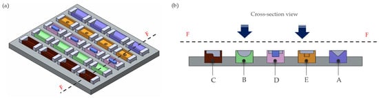 a) was used as a quantitative indicator of contamination buildup in RTM tooling under two processing temperatures: 120 °C and 250 °C. Surface roughness measurements were performed using a MarSurf M 310 portable profilometer (Mahr GmbH, Wiesbaden, Germany) equipped with a PHT 6-350 stylus probe. The device provides high-resolution 2D profile data and is suitable for both flat and curved technical surfaces, making it well-suited for on-site evaluation of mold cavities. Five mold insert geometries were investigated, each representing a typical cavity feature commonly found in RTM tools. These included a bent profile (Type A), cylindrical surface (Type B), S-shaped profile (Type C), sealing notch (Type D), and a drilled injection point (Type E). Each insert was subjected to 15 molding cycles, and R