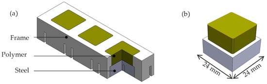 In addition to the roughness measurements, compression-shear tests were conducted to examine how surface changes over repeated cycles affect the force required to demold the resin from the steel surface. To assess how surface contamination affects demolding, compression-shear tests were carried out using a custom fixture. The test setup included a steel punch and a holding device with a cut-out that kept the specimen in place using four side walls and a screw. This fixture was mounted inside a universal testing machine, with a force sensor installed above the punch to measure the force needed to separate the resin from the steel. The testing speed was set to 0.2 mm/min. The complete setup and the recorded force curves are shown in
