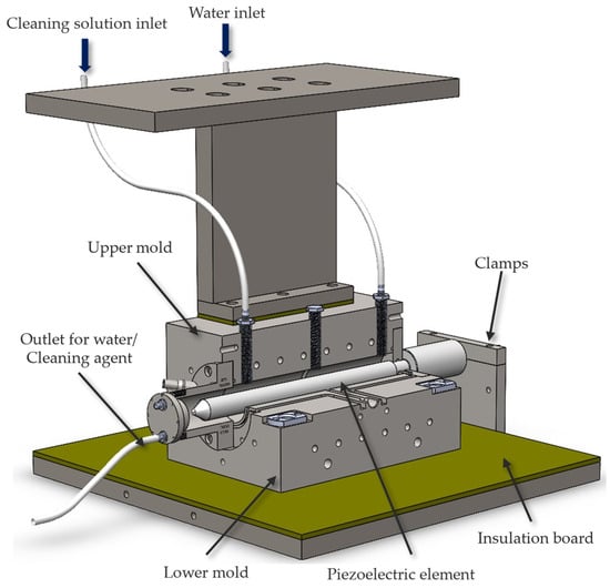 25]. These collapses generate localized high-pressure jets capable of dislodging contaminants without mechanical abrasion. Traditional ultrasonic cleaning, however, demands that the mold tool be fully immersed in a bath, which again necessitates tool removal and disassembly [