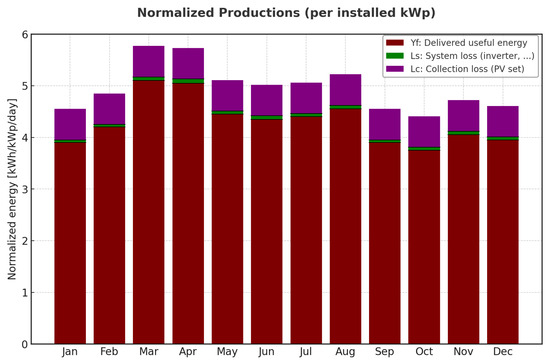 To estimate the actual energy delivered by the system to the user, it is necessary to consider not only the useful energy demand but also the oversizing factor, the efficiencies of the components, and the relative losses associated with different sources. Equation (4) allows for the calculation of this net delivered energy by incorporating all these elements: