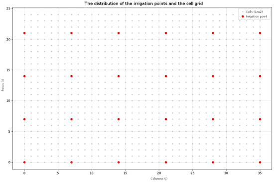 2), and each cell receives water from one or more irrigation points (taps), using a drip system, a sprinkler system ([