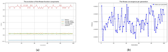 At the conclusion of the evolutionary process, the genetic algorithm succeeded in generating a solution that is significantly improved compared to the reference scenario. The key performance metrics recorded at generation 100 are summarized below: