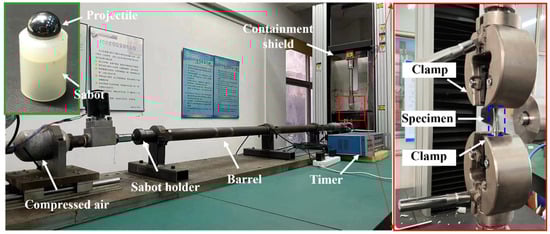 The controlled foreign object damage experiment was executed using a calibrated compressed gas gun system, wherein spherical projectiles were accelerated to prescribed velocities for precise impact on EA4T steel specimens. Spherical projectiles of 2 mm diameter, made of GCr15 bearing steel (hardness: ~65 HRC), were selected to replicate high-velocity impacts typical of industrial FOD scenarios (see Figure 2). In the process of projectiles impact, the air chamber was first filled with a quantitative amount of high-pressure nitrogen gas, and the impact velocity of the sphere was regulated by controlling the amount of high-pressure nitrogen. Considering the operation of high-speed trains, the impact speeds of the projectiles were set to the designed operating speed of 360 km/h (about 100 m/s) for the Fuxing train and the new high-speed railway developed in China with a speed of 600 km/h (approximately 167 m/s). The impact angle was aligned orthogonally to the specimen surface in accordance with standardized testing protocols. Following this, the EA4T steel specimens were prepared as USRPed + unFODed, USRPed + FODed-v = 100 m/s and USRPed + FODed-v = 167 m/s to investigate the influence of foreign object impact on the surface strengthened axle. Prior to the fatigue tests, the morphologies of the impact craters were characterized using a stereoscopic microscope (Shenzhen Star Optical Instrument Co., Ltd., Shenzhen, China), while their microscopic damage features were analyzed via scanning electron microscopy (SEM) (Jeol Ltd., Tokyo, Japan).