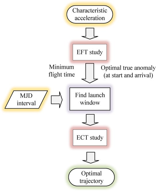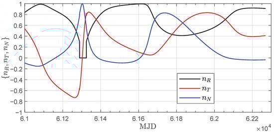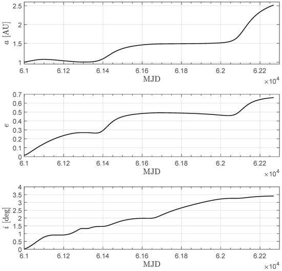 - Curtis, H.D. Orbital Mechanics for Engineering Students; Butterworth-Heinemann: Oxford, UK, 2020; Chapter 8, pp. 423–428. ISBN 978-0-08-102133-0. [Google Scholar] [CrossRef]