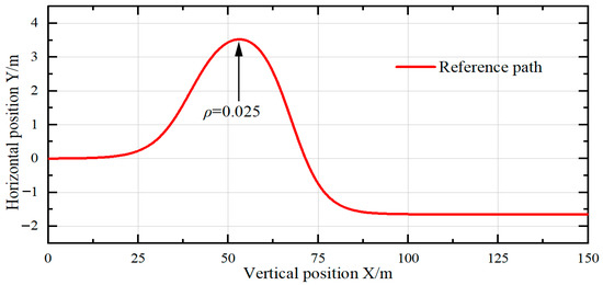 In addition, the double lane path is selected as the second path to test the performance of the controller. As shown in Figure 8. It has the following key advantages: The double lane path involves significant direction changes and different curvature transitions, effectively simulating dynamic curvature changes in road conditions, which can evaluate the adaptability of the controller when facing various curvatures. The double lane path simulates complex scenarios such as overtaking and obstacle avoidance that may occur in real driving, testing the controller’s response capability in high-dynamic situations. Moreover, experiments with the double lane path can be repeated multiple times, facilitating performance comparisons between different controllers and providing feasibility assurance for subsequent real vehicle experiments.