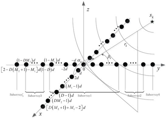 - Pal, P.; Vaidyanathan, P.P. Nested Arrays: A Novel Approach to Array Processing With Enhanced Degrees of Freedom. IEEE Trans. Signal Process. 2010, 58, 4167–4181. [Google Scholar] [CrossRef]
