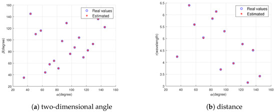 | Step 3 Obtain estimated values and of angle parameters using the root MUSIC algorithm and Equation (3). |