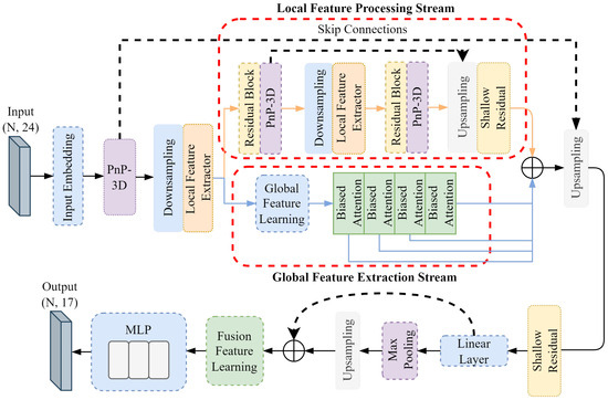 For the construction of the global encoder, the network architecture setting in [28] is referenced, which consists of a global feature learning network and a multi-scale bias attention mechanism. The entire global encoder models the geometric neighborhood as a whole. Here, the global feature learning network is extracted by a simple residual transformation, which fuses the shallow local information and the deep semantic features and then abstracts the initial global information to obtain the initial global embedding information :