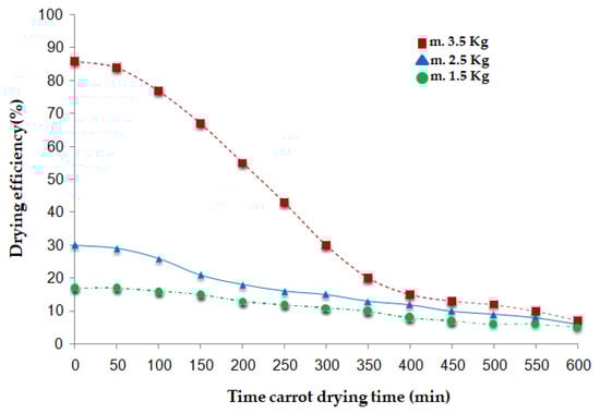 Drying efficiency in the carrot dehydration process.