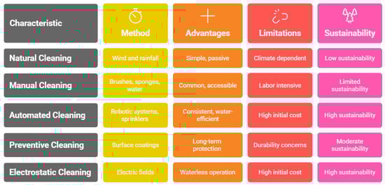 - Kazem, H.A.; Chaichan, M.T.; Al-Waeli, A.H.; Sopian, K. A review of dust accumulation and cleaning methods for solar photovoltaic systems. J. Clean. Prod. 2020, 276, 123187. [Google Scholar] [CrossRef]
