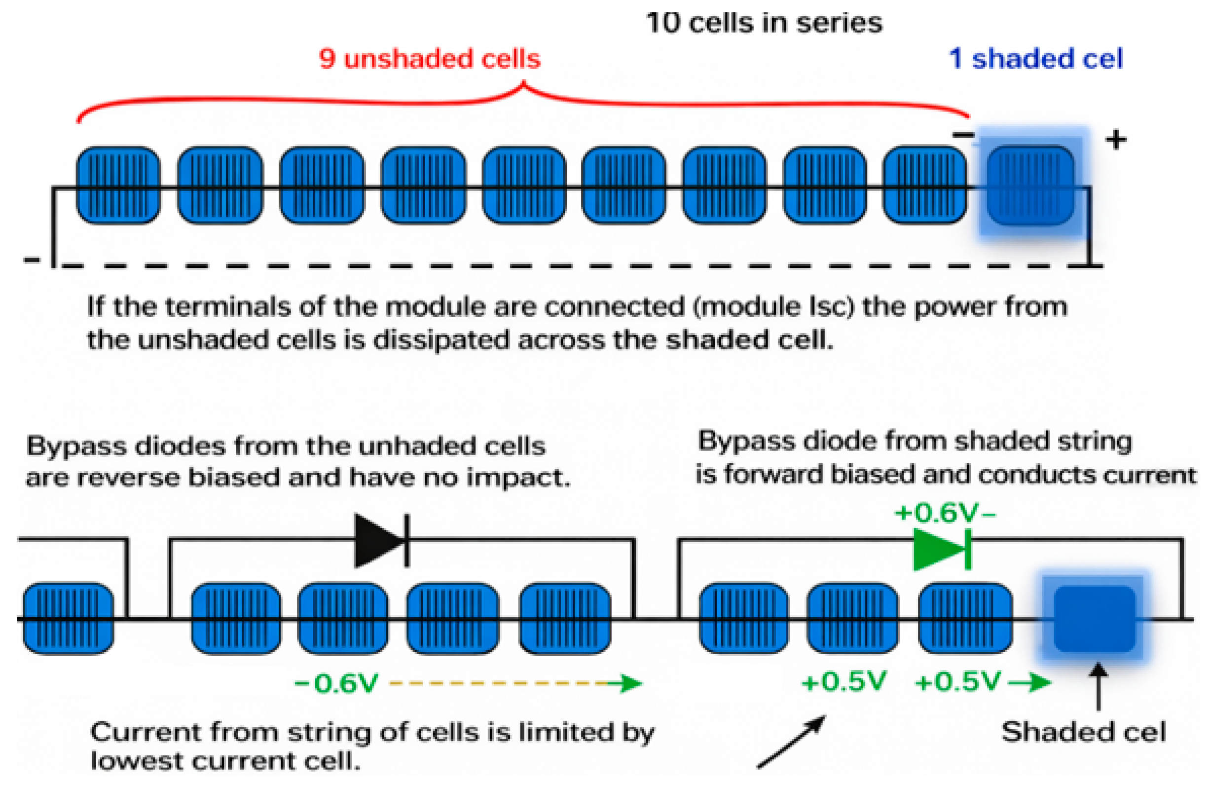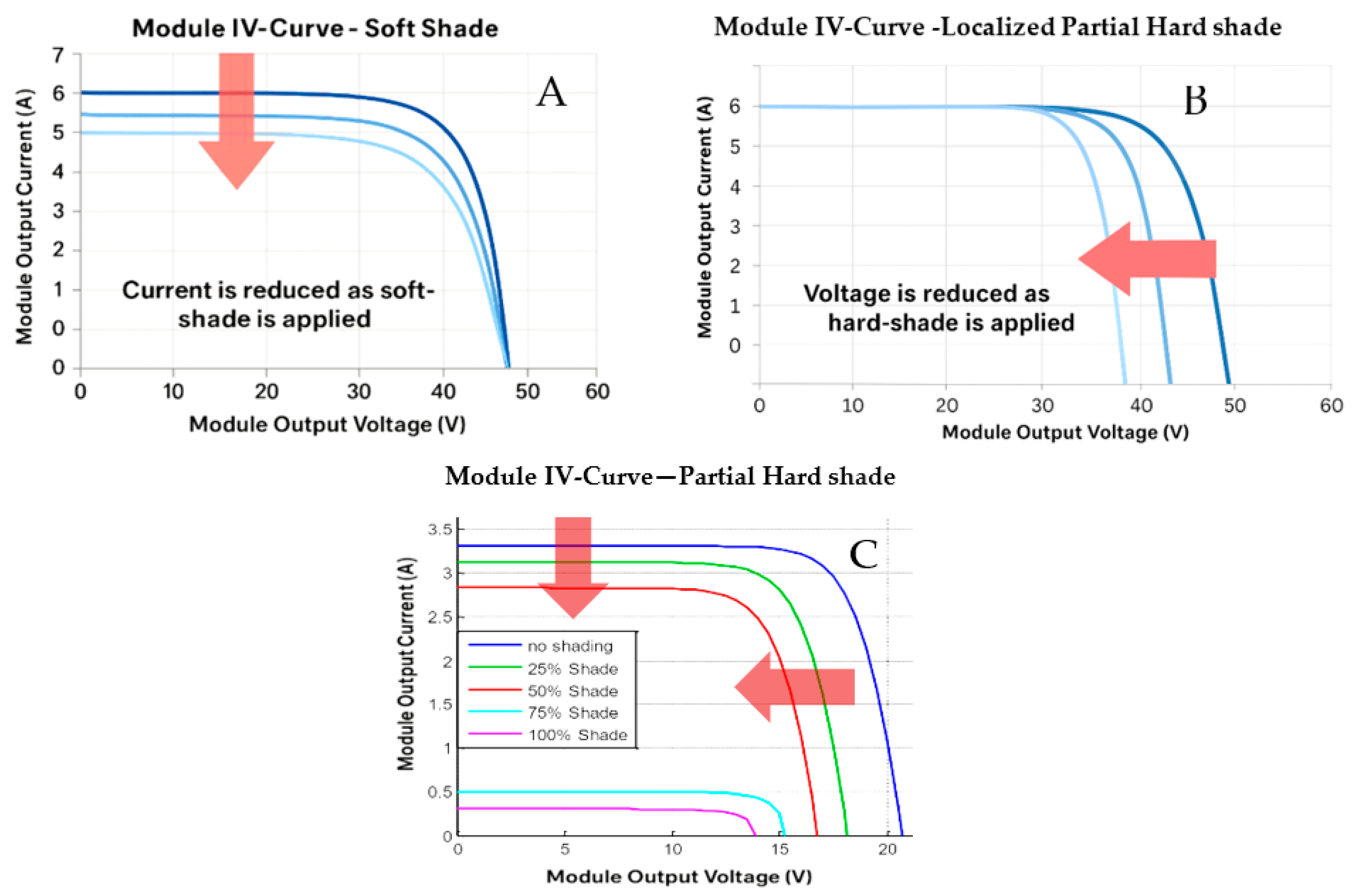 | [69] (2015) | Algeria | Experimental analysis of the degradation in PV system performance induced by sand and dust accumulation and partial shading over a two-month period. | The power output was reduced by 5.1% on dusty days compared to clean days, primarily due to a decrease in short-circuit current. |