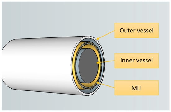 Over the past few decades, applied cryogenics research has led to major progress in the use of special alloys, composite materials, and functional coatings that enhance the performance of cryogenic systems [10,11]. Significant advances have been made in thermal insulation systems, such as multilayer insulation (MLI) and partial vacuum structures, which minimize parasitic heat fluxes [12]. These solutions extend cryogen hold time in applications such as maritime or aerospace transport, reducing the need for frequent refilling [13].