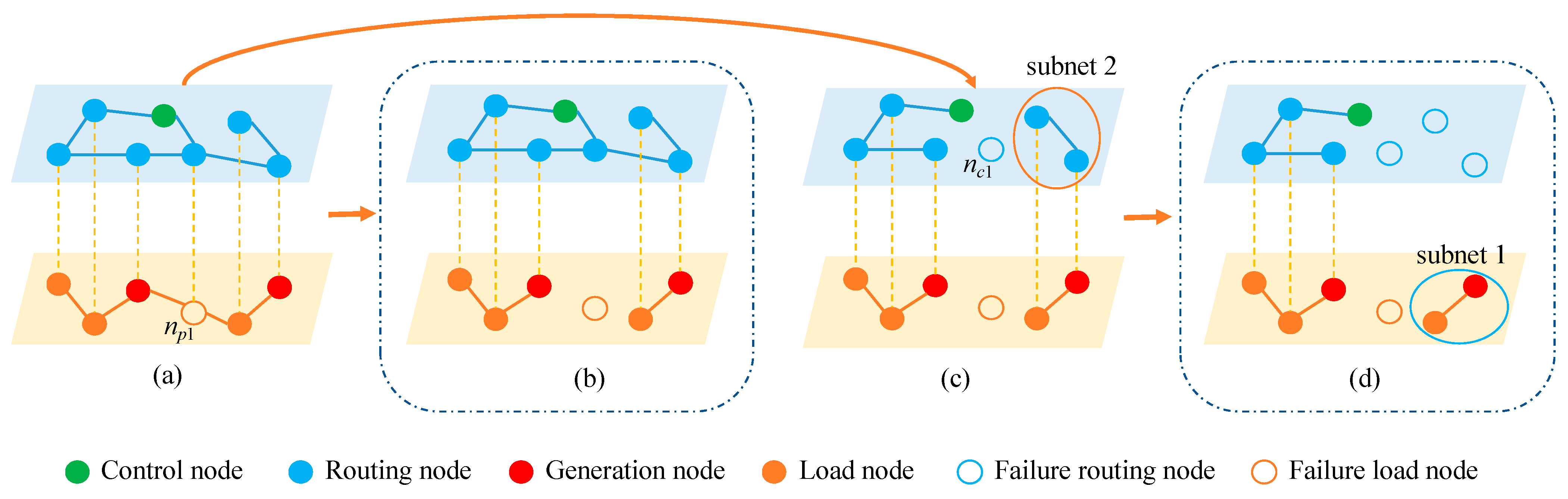 - Chen, L.; Yue, D.; Dou, C.; Cheng, Z.; Chen, J. Robustness of cyber-physical power systems in cascading failure: Survival of interdependent clusters. Int. J. Electr. Power 2020, 114, 105374. [Google Scholar] [CrossRef]