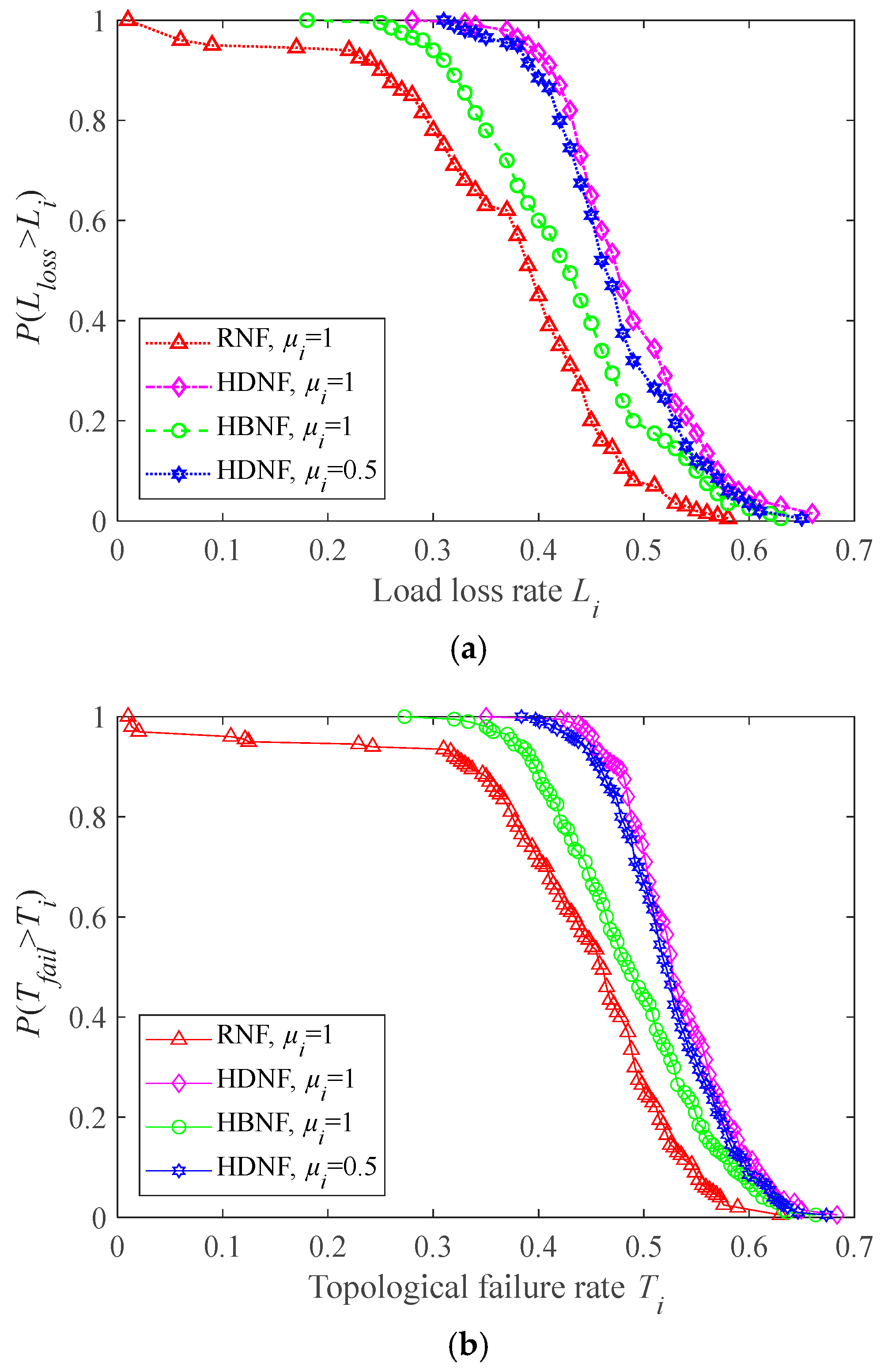 - Gao, X.L.; Peng, M.F.; Tse, C.K. Cascading failure analysis of cyber physical power systems considering routing strategy. IEEE Trans. Circ. Syst. II Exp. Briefs 2023, 70, 136–140. [Google Scholar] [CrossRef]