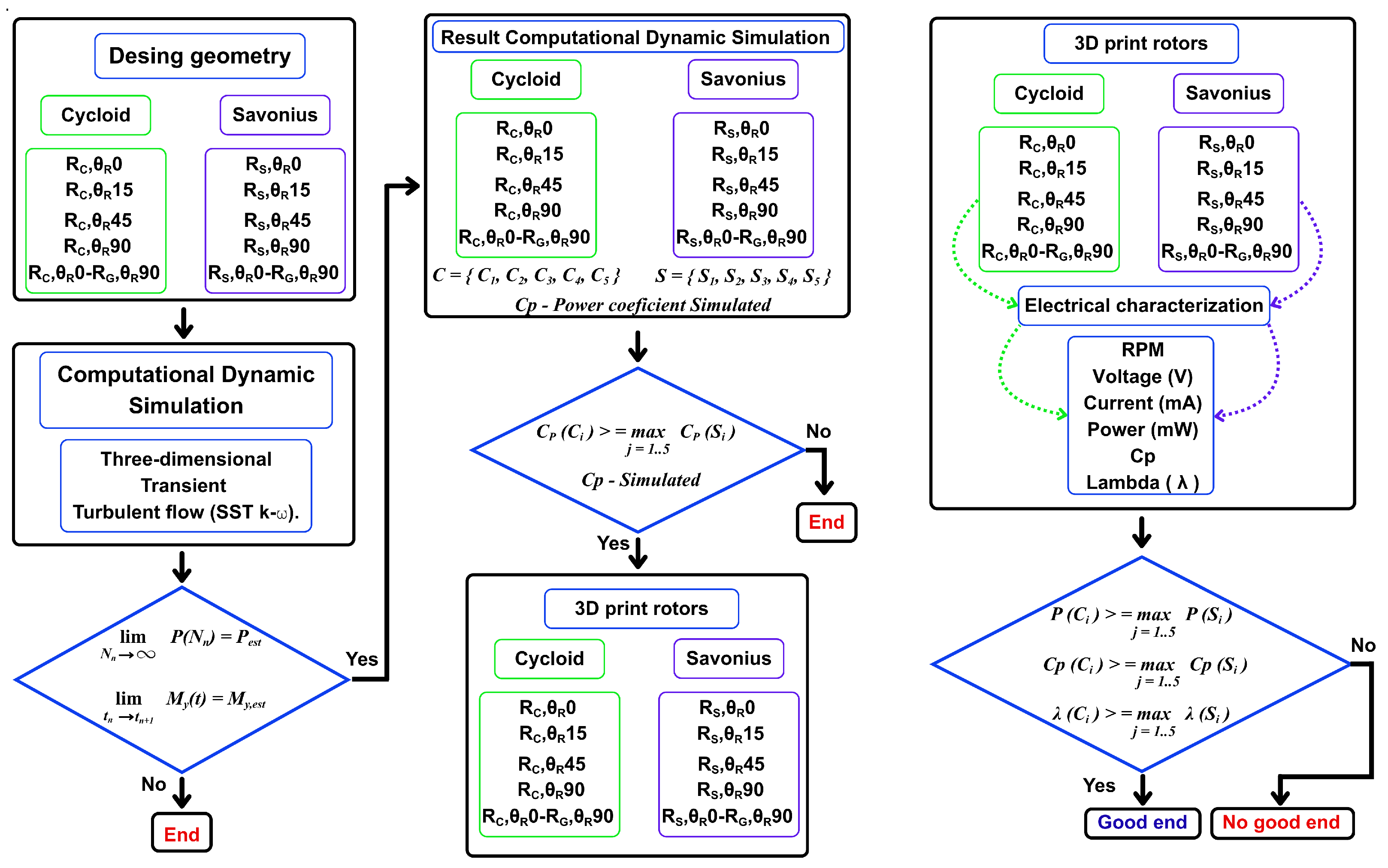 - González-Durán, J.E.E.; Olivares-Ramírez, J.M.; Luján-Vega, M.A.; Soto-Osornio, J.E.; García-Guendulain, J.M.; Rodriguez-Resendiz, J. Experimental and Numerical Analysis of a Novel Cycloid-Type Rotor versus S-Type Rotor for Vertical-Axis Wind Turbine. Technologies 2024, 12, 54. [Google Scholar] [CrossRef]