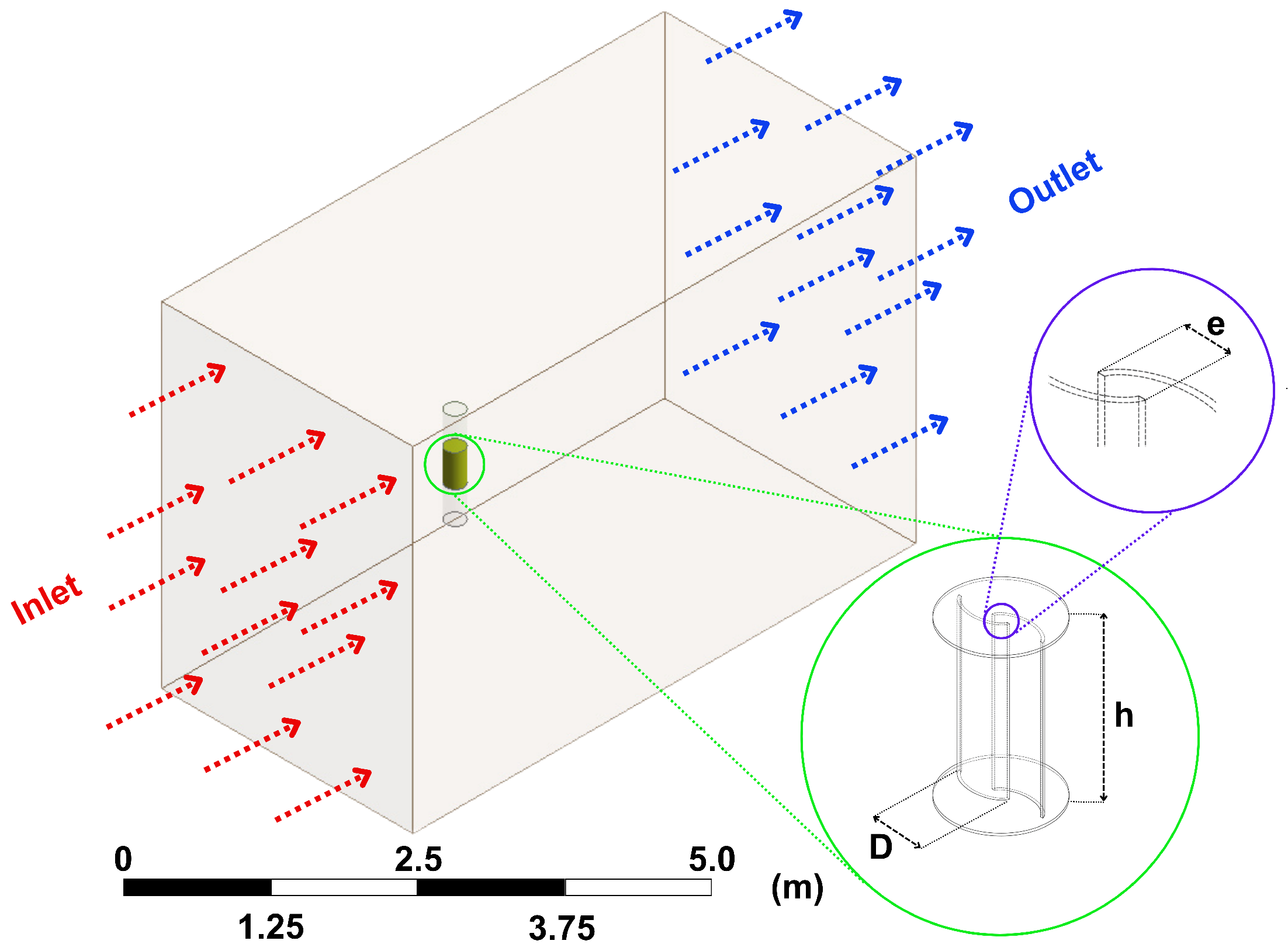 - Bekhti, A.; Debbache, M.; Fares, M.; Tata, M.; Hamane, D.; Boudis, A. Aerodynamic analysis of a small-scale Savonius wind turbine incorporated with wind lenses: A CFD approach for wake pattern and power prediction. Wind Eng. 2025, 49, 933–948. [Google Scholar] [CrossRef]