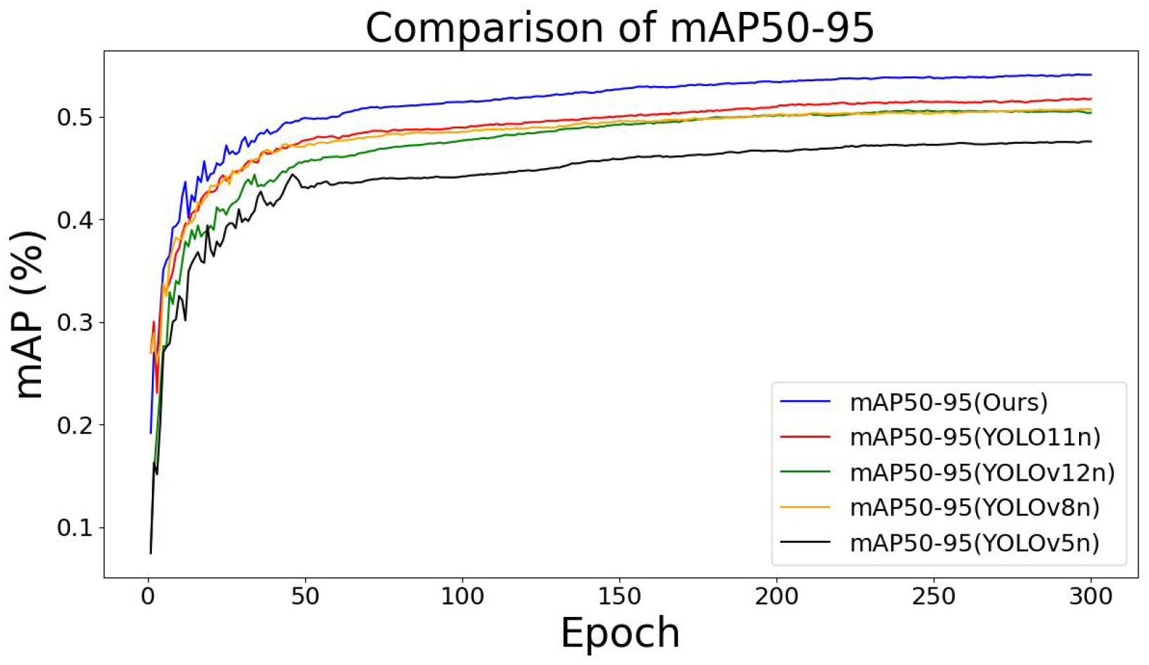 | YOLOv5n mAP@50-95 | 43.9 | 48.3 | 50.0 |