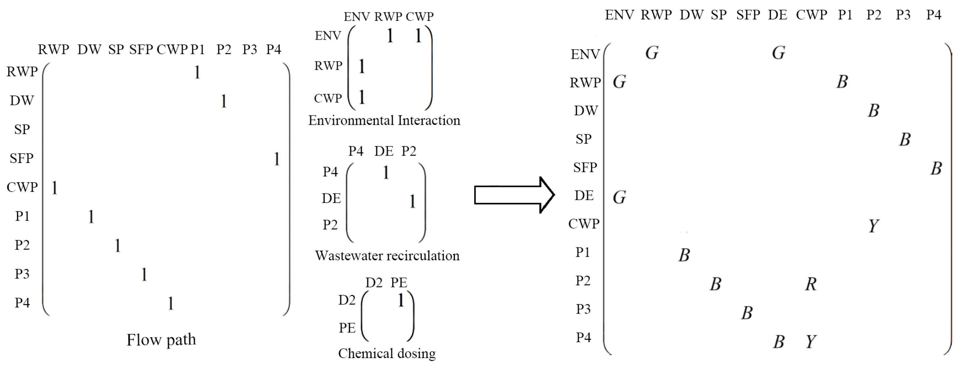 Figure 8 shows the representation form within the adjacency matrix, with the example object system being the water purification system shown in