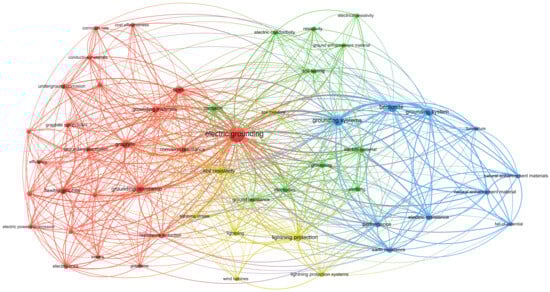 The bibliometric analysis using VOSviewer identified the main thematic clusters structuring global research on GEM between 2018 and 2025. Illustrated in Figure 2, the importantword network reveals dominant terms such as soil resistivity, corrosion rate, graphite composites, lightning protection systems, and ground resistance. This network highlights the multidisciplinary nature of the field, where electrical engineering, materials science, and environmental studies converge to enhance the performance and sustainability of earthing systems.
