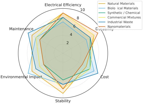 Sustainability considerations now strongly influence the development of GEM. Systematic reviews of environmentally oriented composites have shown that several low-impact alternatives can deliver good electrical and mechanical performance while reducing environmental burdens [11]. Research on natural-origin construction materials also suggests that waste-derived and minimally processed components can improve the mechanical and physical behavior of earthen systems, supporting broader efforts to rely on locally available and sustainable resources [12]. Despite this, there is still a gap in studies that evaluate durability, environmental impact, and electrical behavior together; this lack of integrated analyses highlights the need for comprehensive reviews that bring these aspects into a single framework within GEM research.