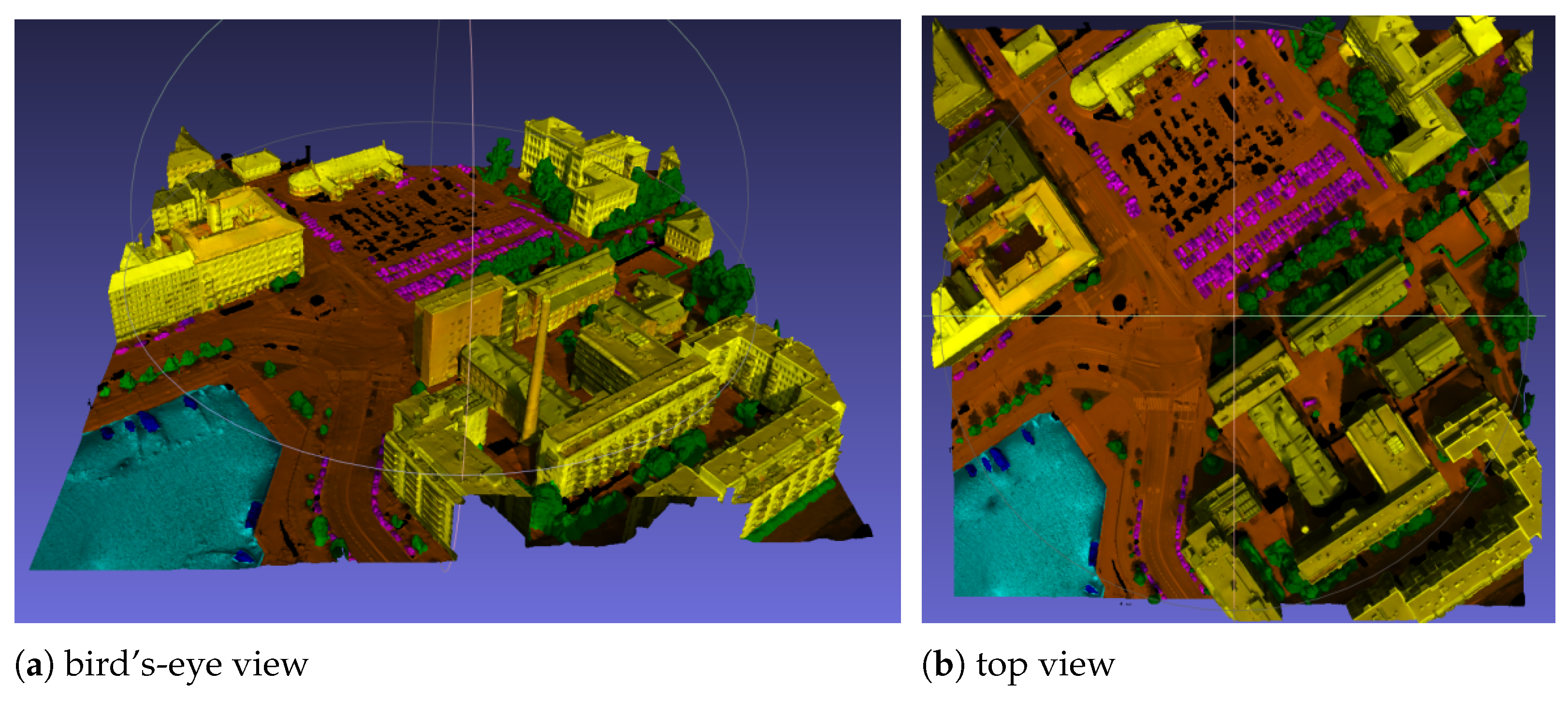 This experiment was conducted on Dataset-1 (the 250 m × 250 m area from SUM_Helsinki, comprising approximately 340,000 triangular faces, introduced in
