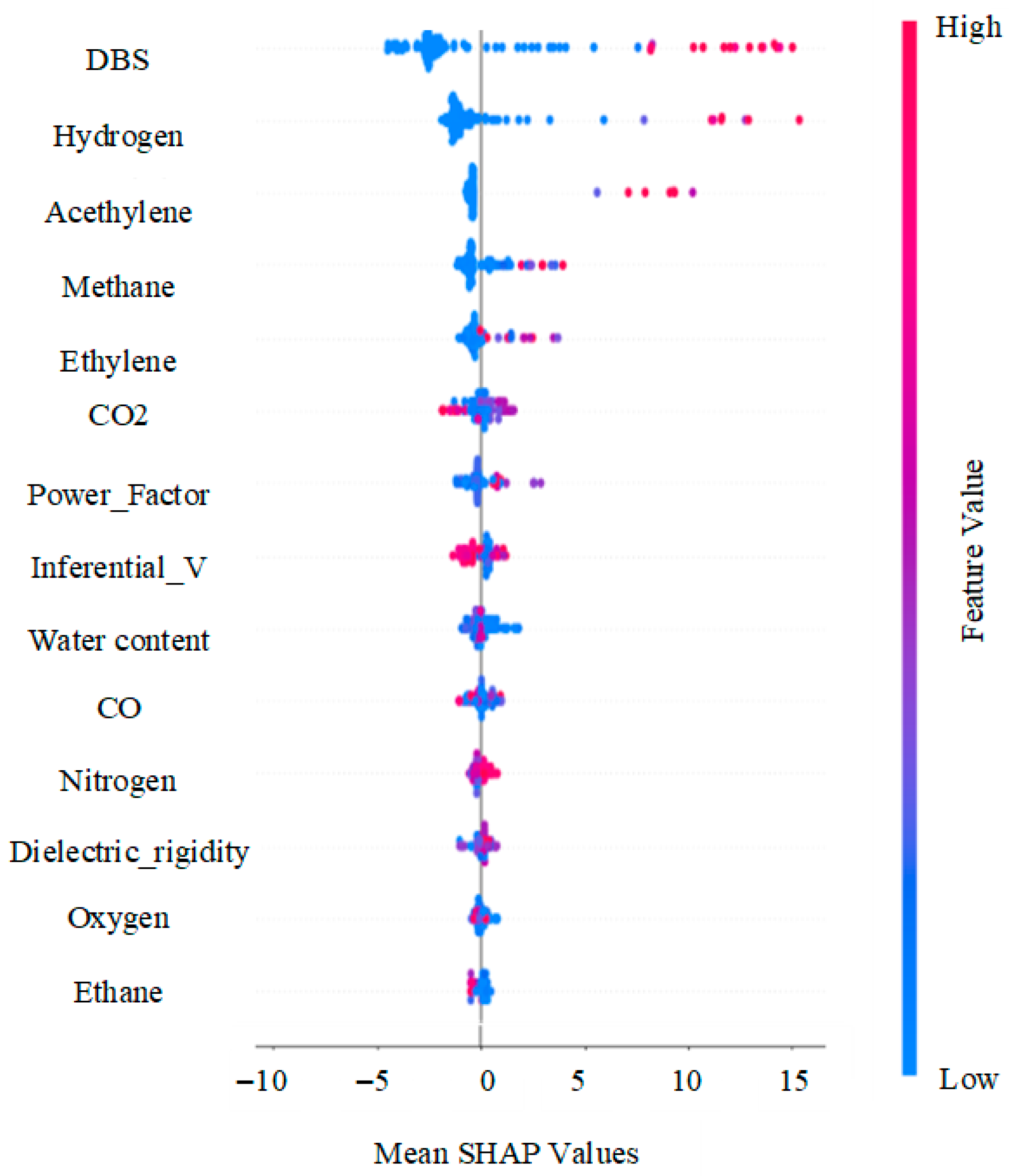 = 0.16). In addition to the model-based and statistical evidence, domain knowledge from DGA supports limited diagnostic value for ethane, oxygen, and nitrogen on HI in real operational conditions, further reinforcing their exclusion from the final feature set [