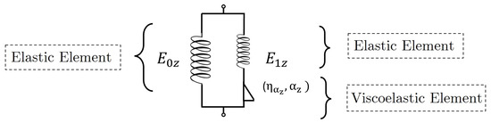 where is the two-parameter Mittag–Leffler function. The coefficients and are elastic parameters, while does not have a direct mechanical analogue but can be related to a characteristic relaxation time through . The exponent is the order of the fractional derivative [19].