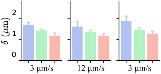 Figure 9 shows the median Young’s modulus values for the three groups. Values were obtained by fitting the force–distance curves with Equation (4). The value of E for cells in Groups II and III is higher than that for cells in Group I at all three indentation depths; this indicates that cells with larger SC are stiffer. However, statistically significant differences are present only in the first and third indentations.