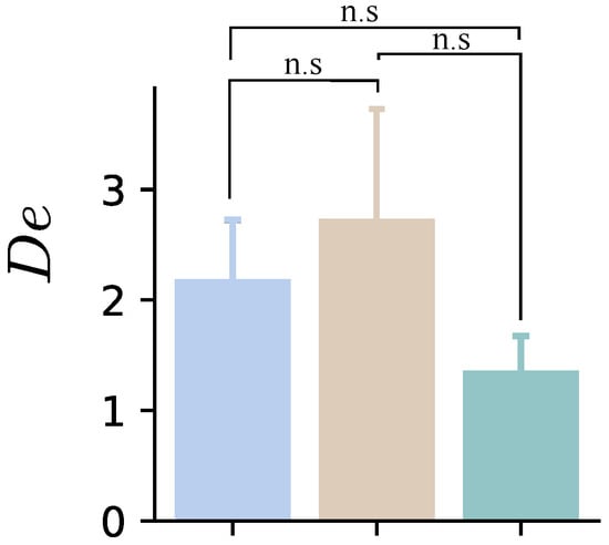 Mean values of the Deborah number obtained from the entire set of cells for the three indentations performed at loading rates of 3 m/s (blue), 12 m/s (beige), and 3 m/s (green). n.s. indicates non-significant differences ().