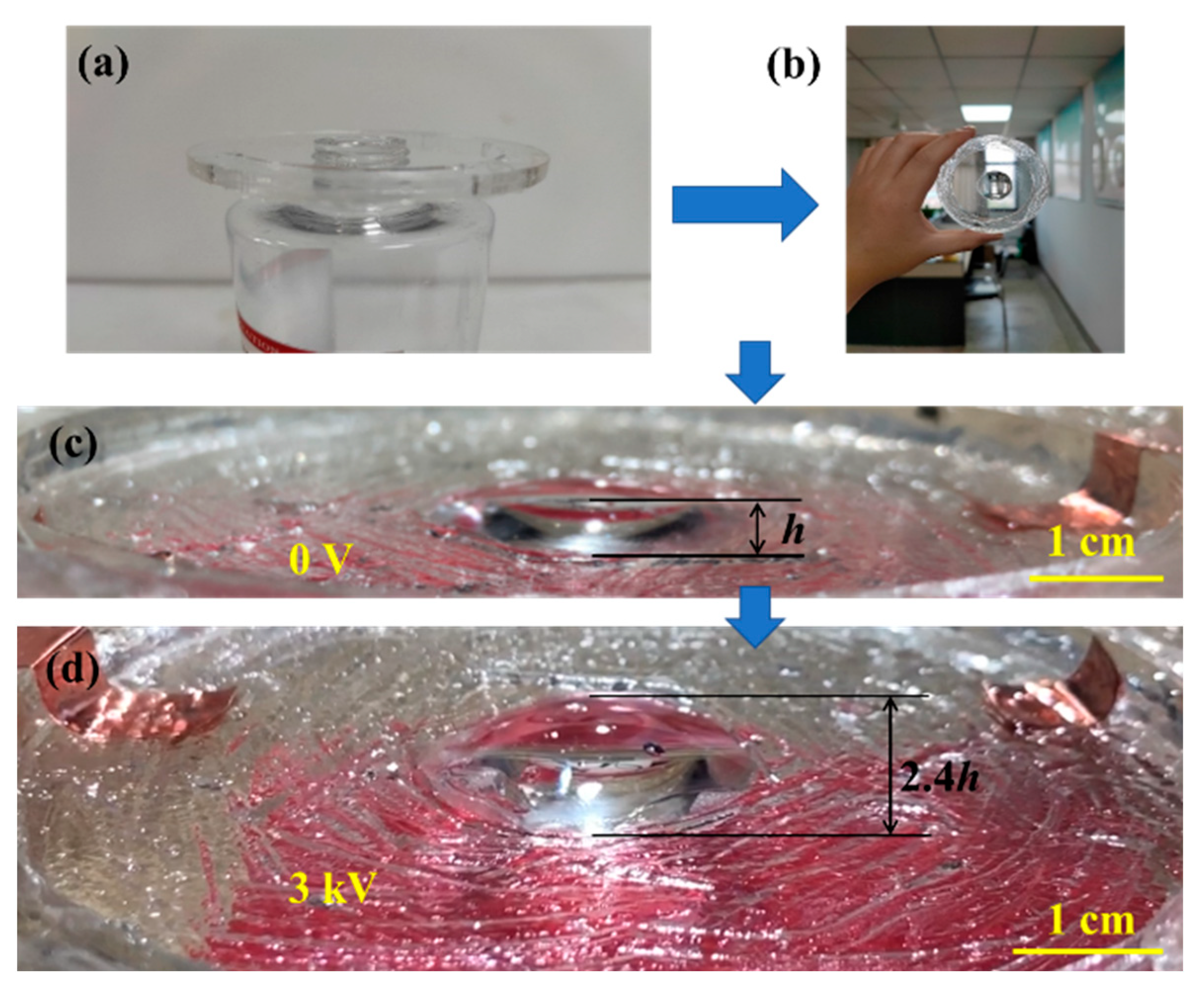 - Zhang, H.; Xia, Z.J.; Zhang, Z.S.; Zhu, J.X. Miniature and tunable high voltage-driven soft electroactive biconvex lenses for optical visual identification. J. Micromech. Microeng. 2022, 32, 064004. [Google Scholar] [CrossRef]
