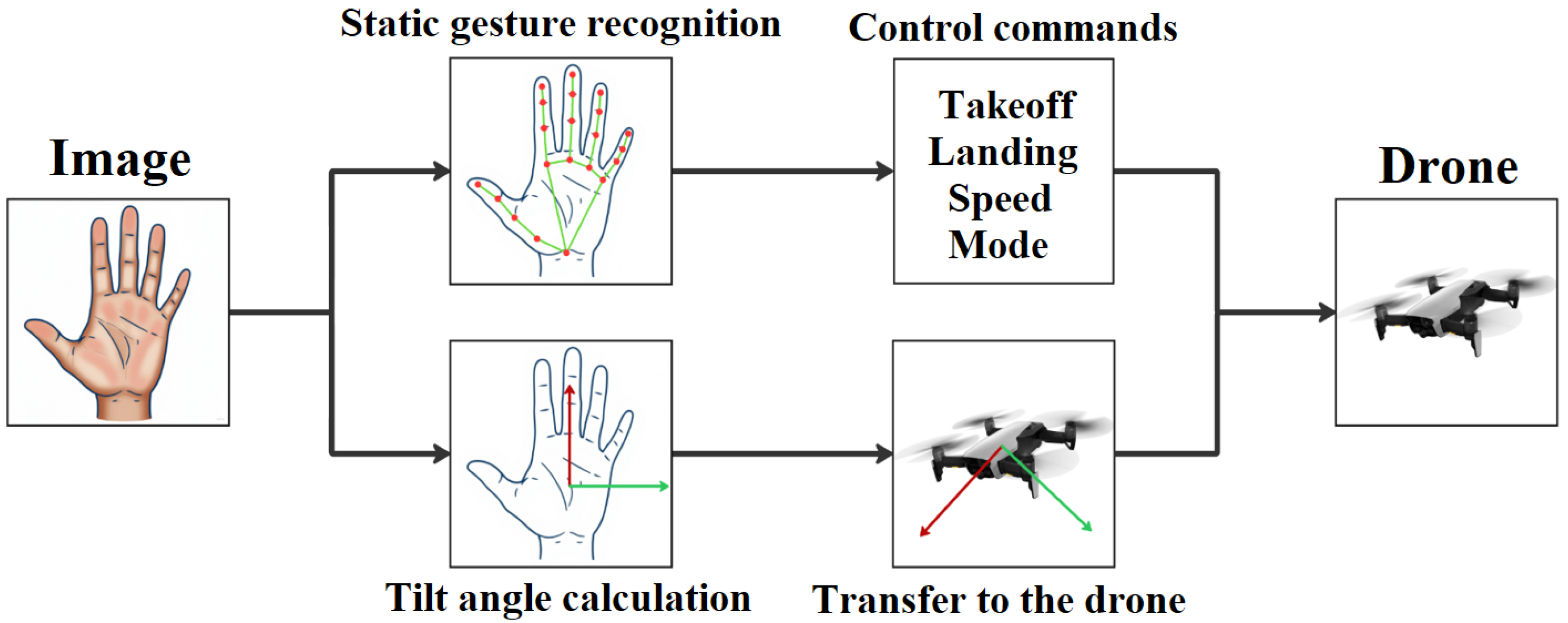 20], have substantially lowered the technical barriers to implementing robust gesture recognition systems. However, existing approaches often suffer from limited gesture vocabularies, insufficient robustness to environmental variations, or inadequate consideration of the unique requirements of UAV control tasks [